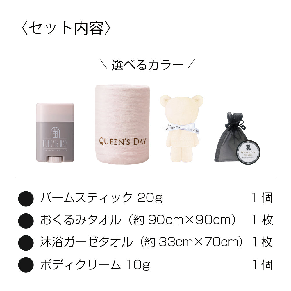 明治時代から愛されるあの「おぼろタオル」とコラボレーションした、赤ちゃんのデリケートな肌を優しく洗う、心地よい肌触りを追求したクイーンズデイのタオル。